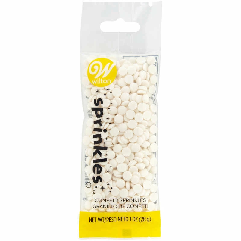 Any sweet treat is more fun with a dash of sprinkles. White confetti come in a convenient small pouch and can be used on cookies, cupcakes, candy and even ice cream. Certified kosher. Weight: 1 oz.