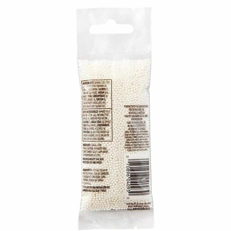 Any sweet treat is more fun with a dash of sprinkles. White nonpareils come in a convenient small pouch and can be used on cookies, cupcakes, candy and even ice cream. Certified kosher. Weight: 1.4oz (40 g).