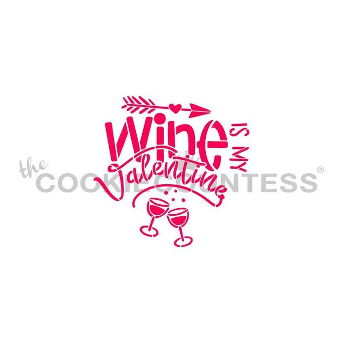 Wine Is My Valentine Stencil Cookie Countess Stencils
